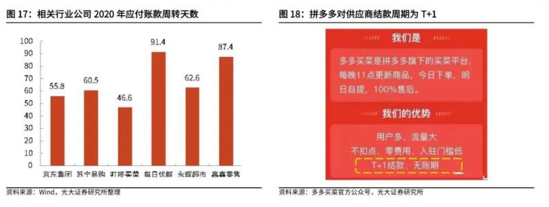 b、當地供應商供貨:社區團購模式對優質供應商來說利弊并存。利端主要是社區團購平臺回款迅速,主流平臺結賬周期為 T+1、T+2,遠快于傳統商超、前置倉生鮮電商及傳統自營電商的結款周期。而弊端主要包括:a、精細化“以銷定采”導致庫存上移;b、售后由供應商負責;c、相對其他零售終端售價偏低。社區團購如何做到吸引優質供應商并相互協同促進,是社區團購平臺在競爭中獲勝的關鍵之一。