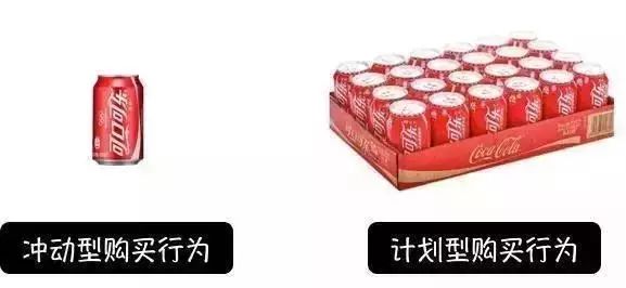 在街上購買一個可口可樂的需求是沖動型的,但是購買一箱可口可樂的需求是計劃性的。用戶暫時喝不到這個可樂,但是接下來的一周時間用戶都不用出門買了。
