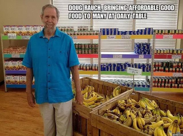 解讀:美國零售業(yè)的傳奇人物Doug Rauch,為了讓超市中快過期以及顏值不高的食物不被浪費。開了一家特別的超市,貨品齊全,客人絡繹不絕。