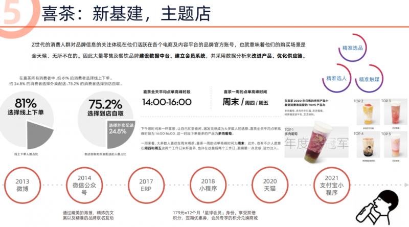 根據2021年Z世代到家消費主要品類中各品牌訂單量占比,可以得到2021年Z世代到家消費主要品類TOP5品牌榜,其中蜜雪冰城、華萊士、阿香米線、牛家人在各自品類中拔得頭籌;? 品牌榜中,本土品牌和新銳品牌表現亮眼,其中多家上榜品牌以平價、國潮為特色,體現了Z世代兼顧品質、潮流和性價比的消費特征。