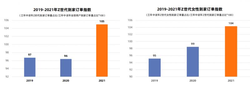? 其中,2021年Z世代女性用戶到家訂單增長快于Z世代男性用戶,是到家消費的中堅力量。