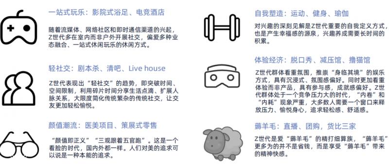 Z世代通常帶有“宅世代”的標簽,偏愛多種業態融合、一站式休閑玩樂的休閑方式。