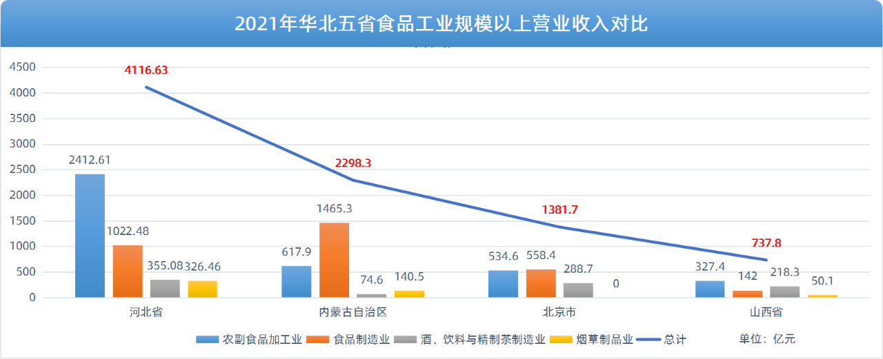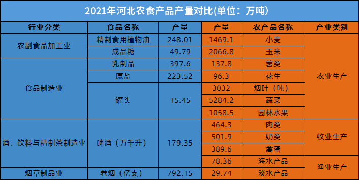 經(jīng)過多年發(fā)展,河北食品工業(yè)已經(jīng)成為經(jīng)濟(jì)快速增長的重要驅(qū)動(dòng)力。2021年以占全部工業(yè)5.8%的資產(chǎn),完成了7.6%的營業(yè)收入和6%的利潤總額,并在多個(gè)農(nóng)食領(lǐng)域創(chuàng)造全國第一乃至世界第一。