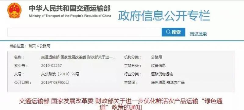 近日,交通運輸部下發了《關于進一步優化鮮活農產品運輸“綠色通道”政策的通知》,對鮮活農產品運輸“綠色通道”政策進一步優化,力求提高鮮活農產品運輸通行效率,減少擁堵,便利群眾。