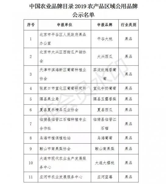 日前,中國農(nóng)產(chǎn)品市場協(xié)會(huì)對中國農(nóng)業(yè)品牌目錄2019農(nóng)產(chǎn)品區(qū)域品牌名單進(jìn)行了公示。