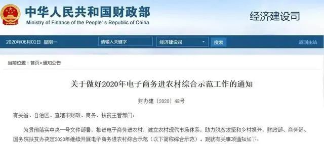 據財政部網站消息,近日,財政部辦公廳 商務部辦公廳 國務院扶貧辦綜合司聯合印發《關于做好2020年電子商務進農村綜合示范工作的通知》。鼓勵各地優先采取以獎代補、貸款貼息,結合先建后補、購買服務、直接補助等支持方式,合理加快資金進度,提高資金使用效益,通過中央財政資金引導帶動社會資本,共同參與農村電子商務工作。