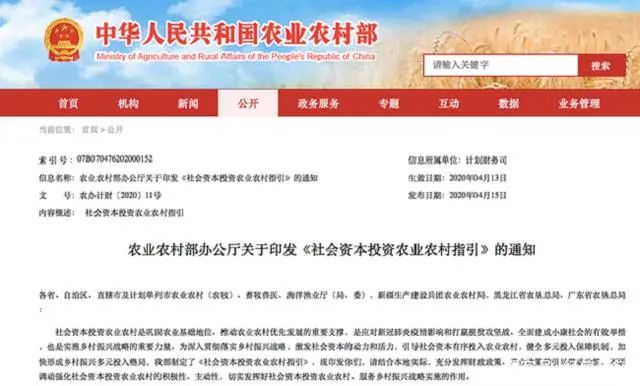 在全面打贏脫貧攻堅戰的收官之年,在積極應對新冠肺炎疫情影響的關鍵時期,為激發社會資本的動力和活力,加快形成鄉村振興多元投入格局,農業農村部于近期印發了《社會資本投資農業農村指引》。文件明確了投資的重點產業和領域,創新了政府和社會資本合作模式,充分發揮財政政策、產業政策的引導帶動功能,不斷調動強化社會資本投資農業農村的積極性、主動性。