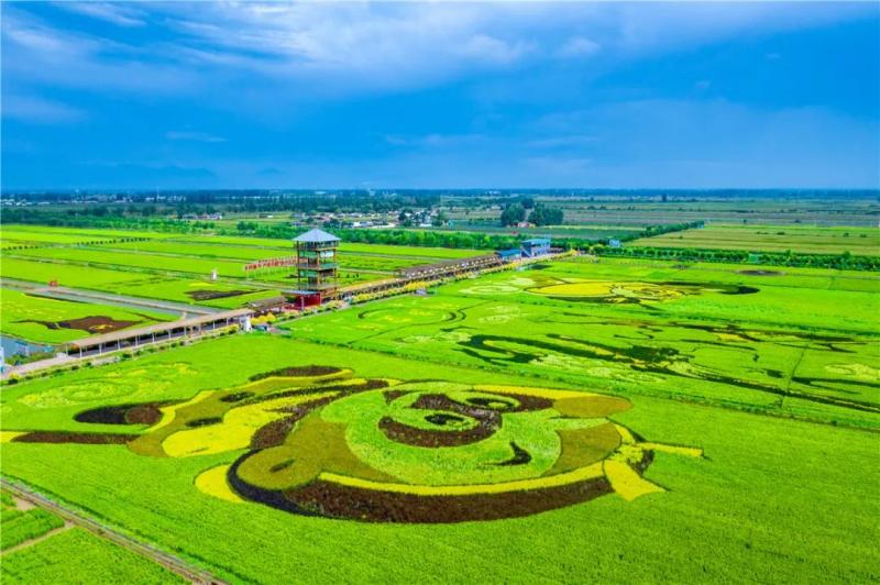 新中國成立70周年,央視來航拍取景,在閱兵式片頭,全國人民看到了這片壯闊的稻田畫。
