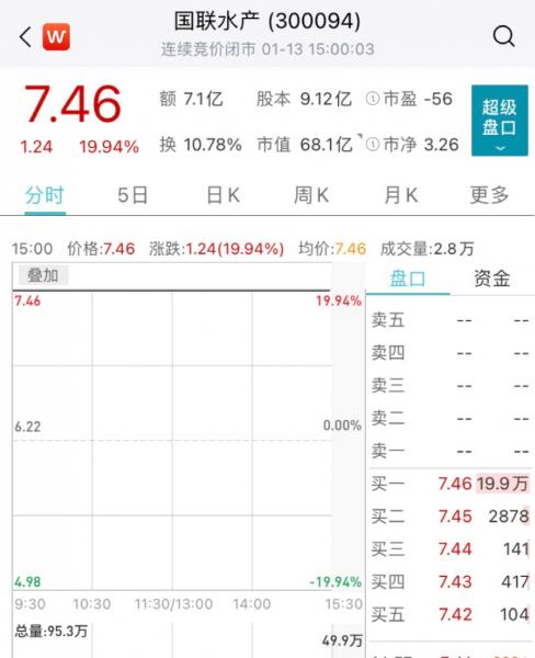 受上述消息影響,國聯(lián)水產(chǎn)連續(xù)兩日20CM漲停。開年以來,國聯(lián)水產(chǎn)8個交易日累計大漲65%。
