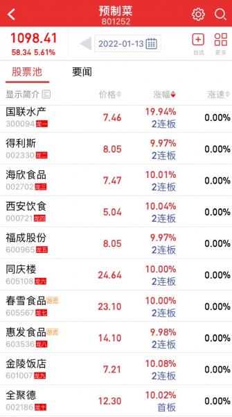 與此同時,受臨近春節(jié)等情緒的影響,預(yù)制菜概念近期表現(xiàn)突出。