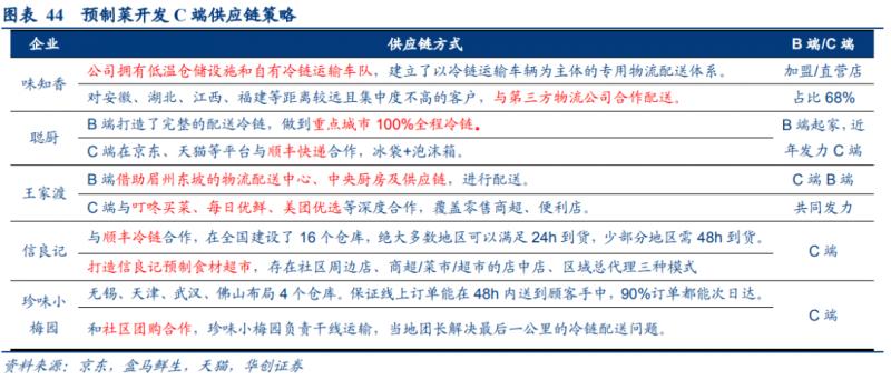 于凍品商而言,速凍技術(shù)較好解決了預制菜保質(zhì)期短、標品率低的問題,提高了渠道規(guī)?;僮骺赡?。而冷藏和常溫型預制菜,由于運輸距離有限、保質(zhì)期較短,未來更多由門店型承擔(可直配滿足保質(zhì)期要求),不過由于我國下游渠道相對分散,零售型品牌難以擺脫渠道邊界,更多呈現(xiàn)區(qū)域競爭狀態(tài)。