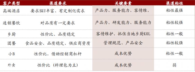高端酒店/宴席:看重食品安全、SKU、口味,不輕易更換供應商,對服務要求高