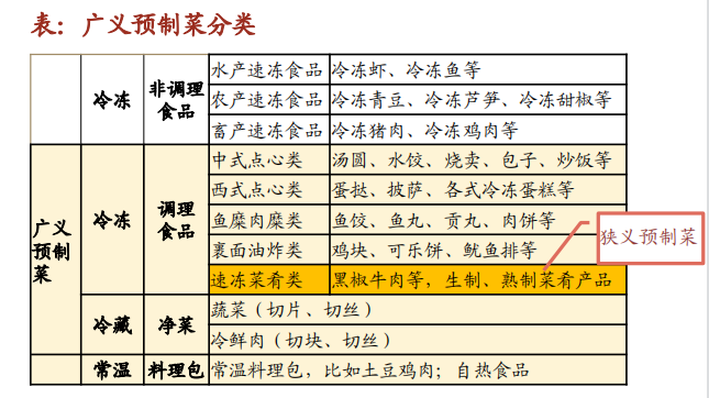 廣義預制菜包括速凍調理食品、冷藏&常溫預制菜