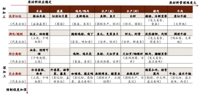原料可獲得度:上游供給穩定性、原料價格穩定性影響原料管理難度? 工藝復雜度:不同品類預制菜工業化水平存在差異