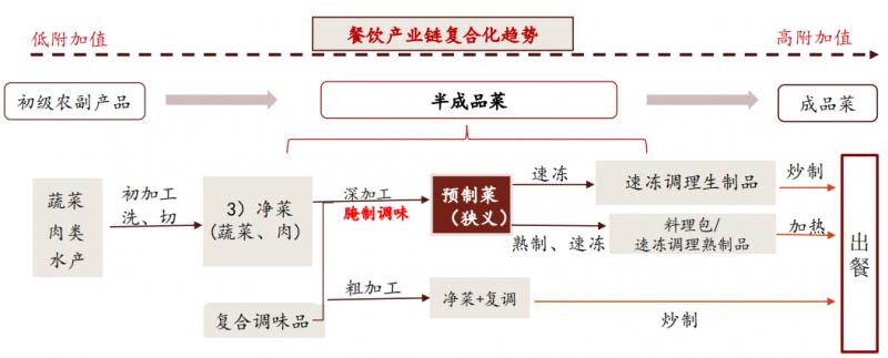 預制菜可視作多個品類的集合,是食品加工、餐飲業工業化進步的產物,預制包括食品加工半成品與成品。