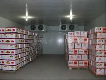 差壓預冷庫與高溫庫相比,增加了差壓預冷通風系統,能在6小時內將入庫果蔬溫度降至預冷終止溫度。要求空氣流量不少于0.06立方米/(千克·分鐘),穿過果蔬孔隙的風速在0.9~1.5米/秒,且穿過果蔬孔隙各部分最大風速與最小風速差≤0.5米/秒。差壓預冷庫宜設置加濕裝置,避免果蔬水分快速損失。差壓預冷庫優點是適用品種廣泛、預冷速度快、預冷均勻、成本相對較低;缺點是對果蔬堆碼、包裝都有要求,操作較為復雜。差壓預冷庫適用于甜椒、番茄等果菜類蔬菜和甜瓜、油桃等果品。