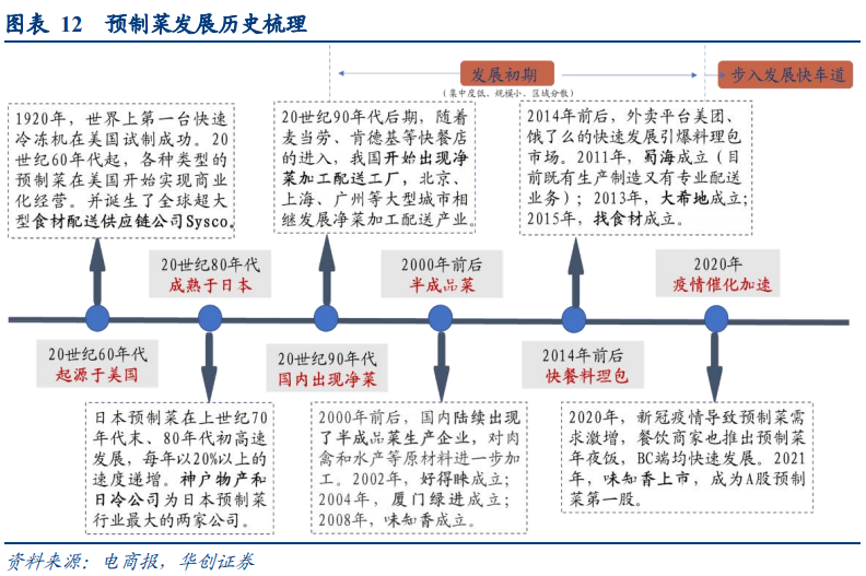 90年代后隨著麥當勞、肯德基等快餐店進入,我國開始出現凈菜配送加工廠,2000年后深加工的半成品菜企業開始涌現,但由于條件不成熟,行業整體發展仍較為緩慢。