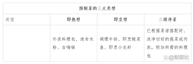 在成為頂流之前,預制菜的“前身”是半成品菜或者料理包,大部分消費者對這個概念還比較陌生。后來預制菜這個名稱開始流行,對它的定義也逐漸清晰化,目前業內普遍認為預制菜主要包括三大類型,一類是即熱型,包括外賣料理包、速食米粉、自嗨鍋等;一類是即烹型,例如調理牛排、即烹酸菜魚、即烹小龍蝦等;還有一類則是三級凈菜,如已根據菜譜搭配好、洗凈切好的蔬菜或肉類,附加所需的料理包。
