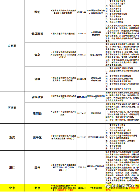 在2023年,中央一號文件提出“提升凈菜、中央廚房等產業標準化和規范化水平。培育發展預制菜產業。” 預制菜首次被寫入中央一號文件,該文件出臺后,各省市以及各級企事業單位做出積極響應。