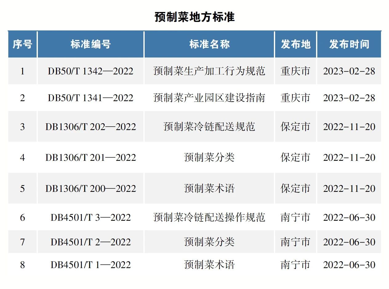 我國預制菜產業標準化建設取得初步成效。廣東、山東、江蘇等各地政府及行業組織紛紛出臺預制菜相關標準,涵蓋預制菜定義、分類、評價指標、檢驗規則等方面。