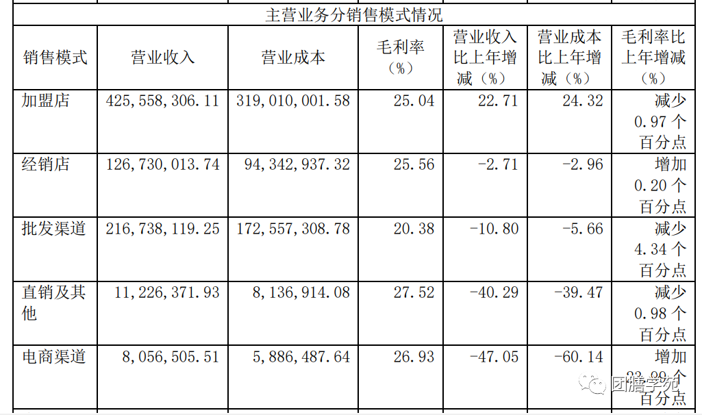 在不考慮門店開業時長和各門店客流差異的前提下,初步估算出,過去五年味知香加盟店的單店年平均營收能力分別為34.10萬元、32.43萬元、28.65萬元、26.29萬元、25.11萬元,呈現出下滑態勢。