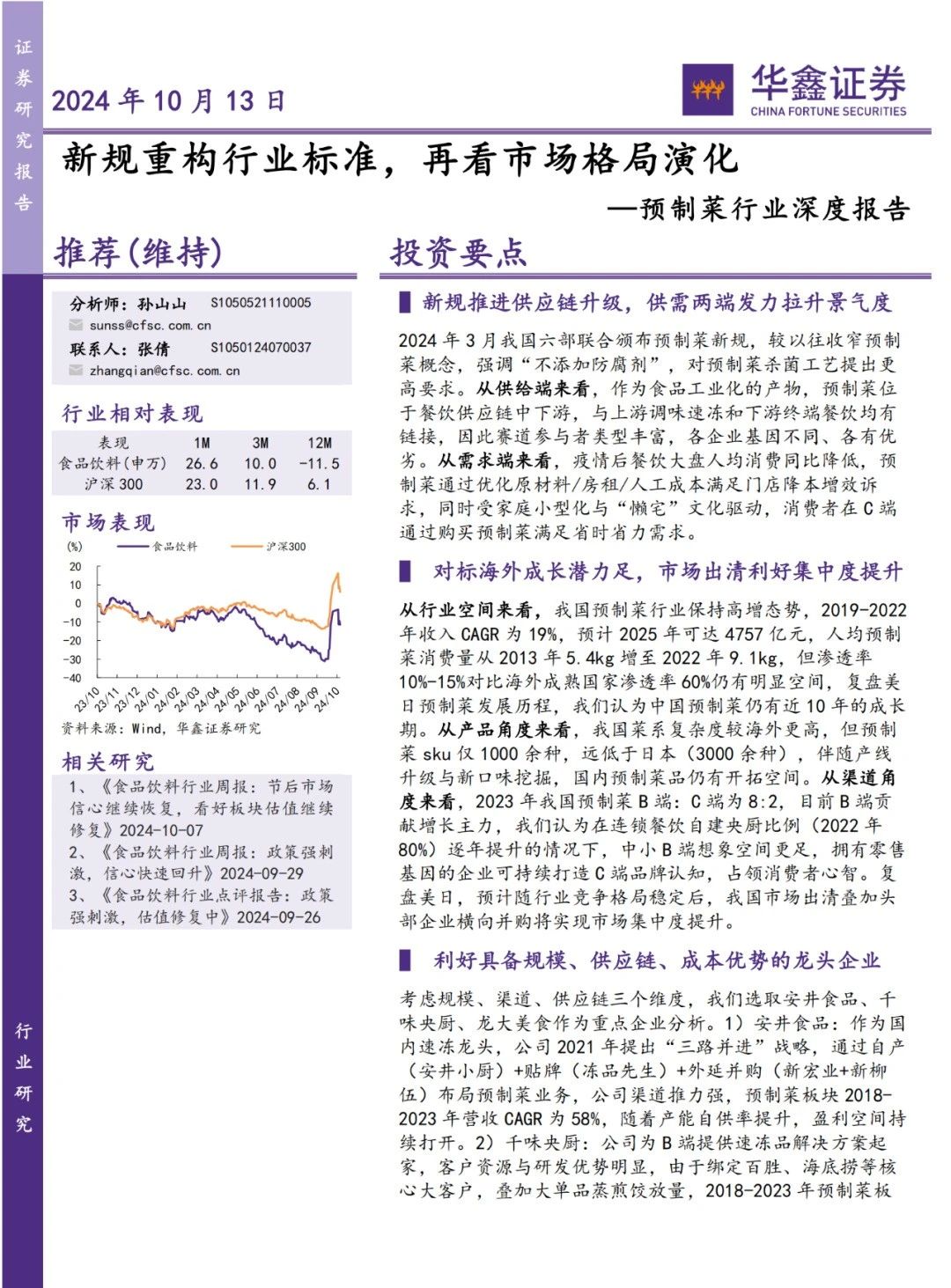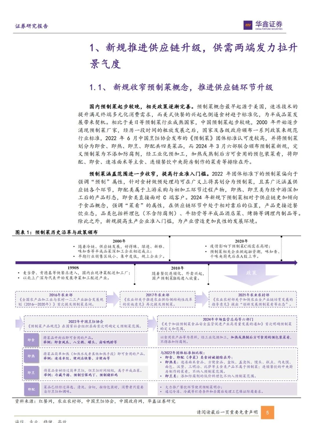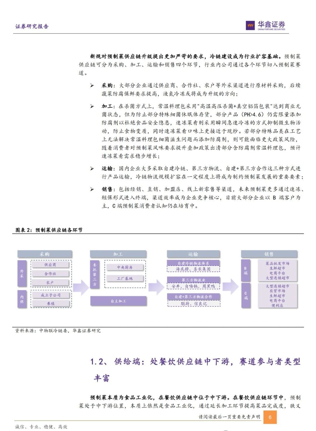 2024 年 3 月我國六部聯合頒布預制菜新規,較以往收窄預制菜概念,強調“不添加防腐劑”,對預制菜殺菌工藝提出更高要求。從供給端來看,作為食品工業化的產物,預制菜位于餐飲供應鏈中下游,與上游調味速凍和下游終端餐飲均有鏈接,因此賽道參與者類型豐富,各企業基因不同、各有優劣。從需求端來看,疫情后餐飲大盤人均消費同比降低,預制菜通過優化原材料/房租/人工成本滿足門店降本增效訴求,同時受家庭小型化與“懶宅”文化驅動,消費者在 C 端通過購買預制菜滿足省時省力需求。