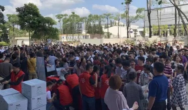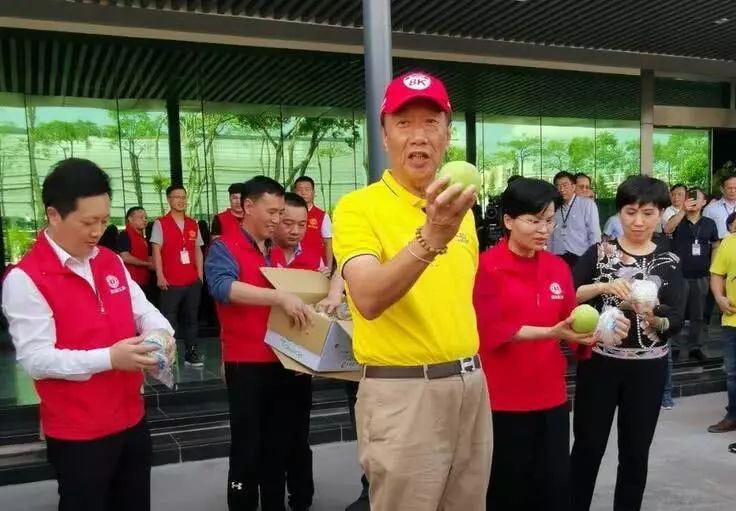 兜售現場吸引了 500 余名員工聞訊趕來排隊搶購,郭臺銘在現場擔當銷售員先行開箱試吃,還加入采購隊伍和員工一起排隊選購。僅一小時 600 箱番石榴就被搶購一空。
