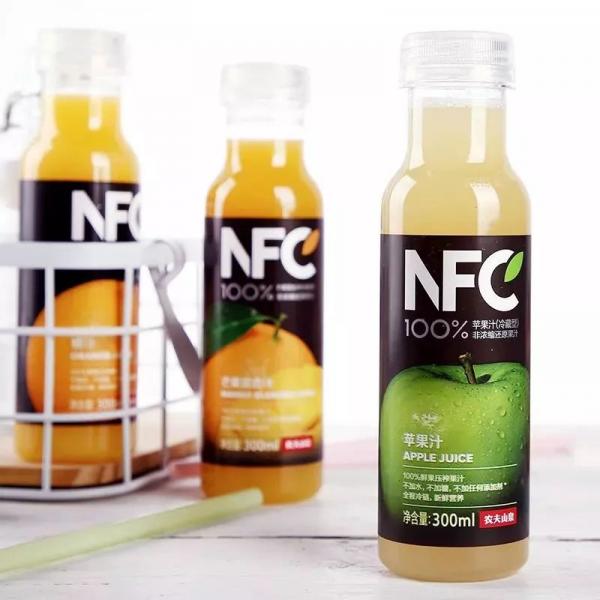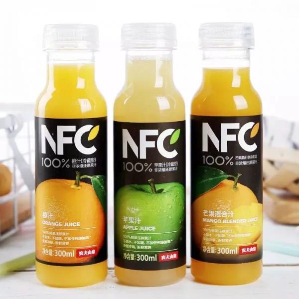 但是,產品瓶型繼續采用農夫山泉常溫NFC果汁瓶型,新品包裝依舊凸顯NFC字樣,但包裝更加凸顯產品口味。
