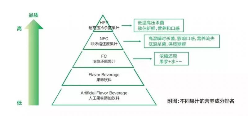 前幾年,NFC果汁流行,而農夫山泉NFC果汁又為該品類帶來極大的行業關注。之后,HPP果汁出現,產品更新鮮,口味更純正。