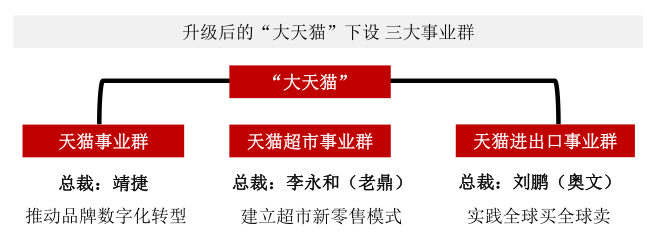 ? 部門:升級為三大事業群,天貓+超市+進出口