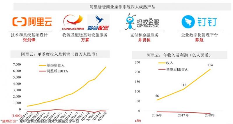 11 個商業要素:品牌、商品、營銷、渠道、制造、服務、金融、物流、組織等維度幫助企業數字化轉型。阿里云2018財年收入為214億人民幣。