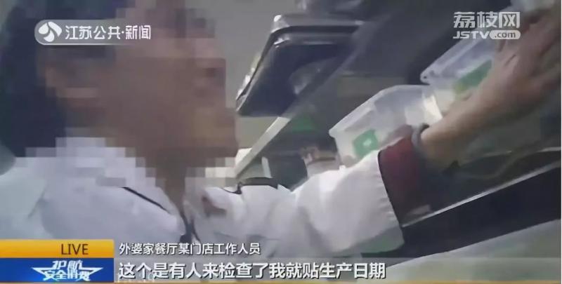 “臥底”人士透露,為了節約成本,一些過期食材并不會丟掉,而是繼續使用。為了防止被上級部門查到,導致餐廳被扣分,每次得到檢查的通知,餐廳都會臨時貼上當天生產的標簽。