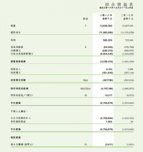 2018 年,中國雨潤食品集團有限公司實現營業收入 126.5 億港幣,同比增長 5%;凈利潤虧損 47.6 億港幣,虧損幅度同比增加了 149% 。