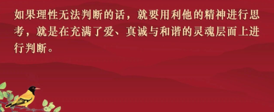 如果理性無法判斷的話,就要用利他的精神進行思考,就是在充滿了愛、真誠與和諧的靈魂層面上進行判斷。