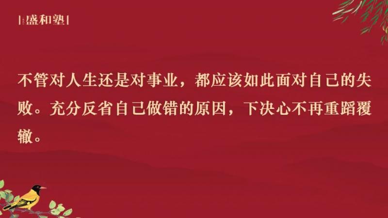不管對人生還是對事業,都應該如此面對自己的失敗。充分反省自己做錯的原因,下決心不再重蹈覆轍。