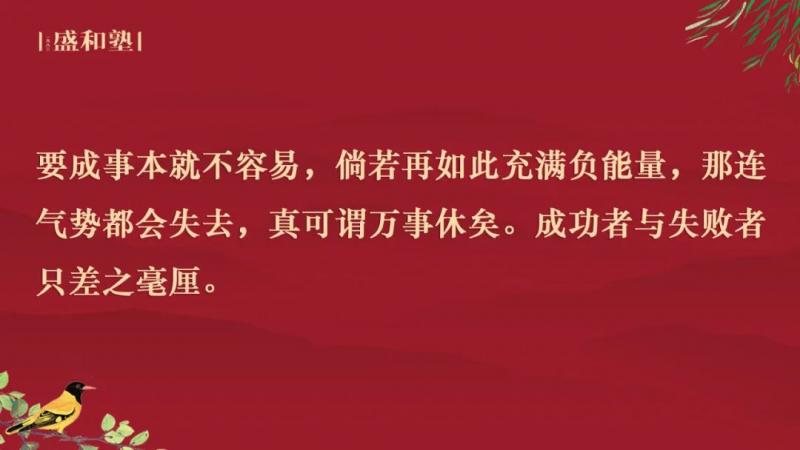 要成事本就不容易,倘若再如此充滿負能量,那連氣勢都會失去,真可謂萬事休矣。