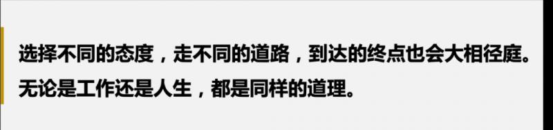 針對自身所處的環(huán)境,是采取卑屈、怨恨等消極的態(tài)度,還是把困難的任務(wù)當(dāng)作自己發(fā)展的機(jī)會,以積極的態(tài)度去應(yīng)對?選擇不同的態(tài)度,走不同的道路,到達(dá)的終點(diǎn)也會大相徑庭。無論是工作還是人生,都是同樣的道理。