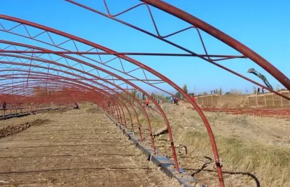 河南內黃縣張龍鄉農民在搭建蔬菜大棚。入冬以來,內黃縣許多農民開始搭建蔬菜大棚,改變過去傳統種植模式,提高經濟效益。目前,該縣已發展蔬菜大棚17萬多畝,設施農業成為當地農民脫貧致富的重要途徑。