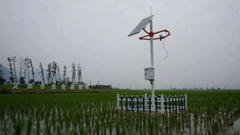與傳統稻田中豎起的是稻草人不同,“5G 田”中豎起的是一個個約 2 米高、自帶太陽能翻板的設備,這便是“5G 田”的“核心武器”之一——農田數字采集站。