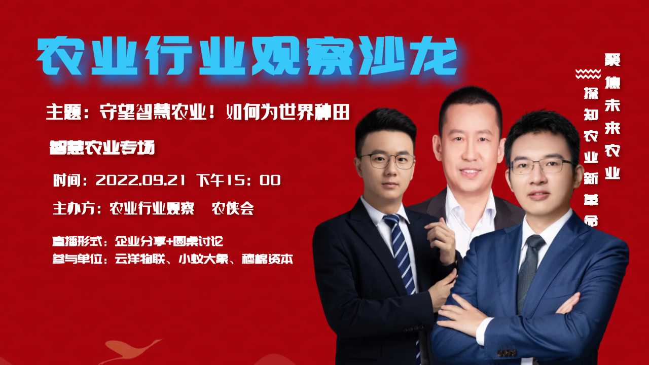 因此,我們策劃了未來農(nóng)業(yè)系列活動,本期活動聚焦“守望智慧農(nóng)業(yè)!如何為世界種田”主題,2022年9月21日本周三15:00-17:00和大家在線上見面。本期活動希望通過對智慧農(nóng)業(yè)公司、農(nóng)業(yè)科技公司的創(chuàng)新布局、智慧農(nóng)業(yè)新政策解讀及分享,解密智慧農(nóng)業(yè)新圖景、新商業(yè)、新模式,共同展望行業(yè)未來農(nóng)業(yè)的可能性。