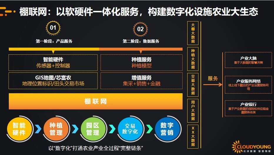 魯錫峰還表示,云洋物聯推出了以軟硬件一體化服務,構建數字化設施農業大生態的“棚聯網”,以“數字化”打通農業產業全過程“完整鏈條”。同時,以芯益農和芯富農為底層驅動和入口,云洋物聯構建棚聯網設施農業大生態。比如,推出了智慧種植管理平臺(芯益農)、產地端數字化交易和本地化產業服務平臺(芯富農)、數據驅動的農產品交易/供應鏈服務平臺(云洋優選)等業務模式。另外,云洋物聯還推出了溫室工程建設服務、物聯網基礎搭建服務、大數據分析服務、園區運營增值服務等業務領域,鍛造了一芯智農,一心益農,全流程溫室解決方案。