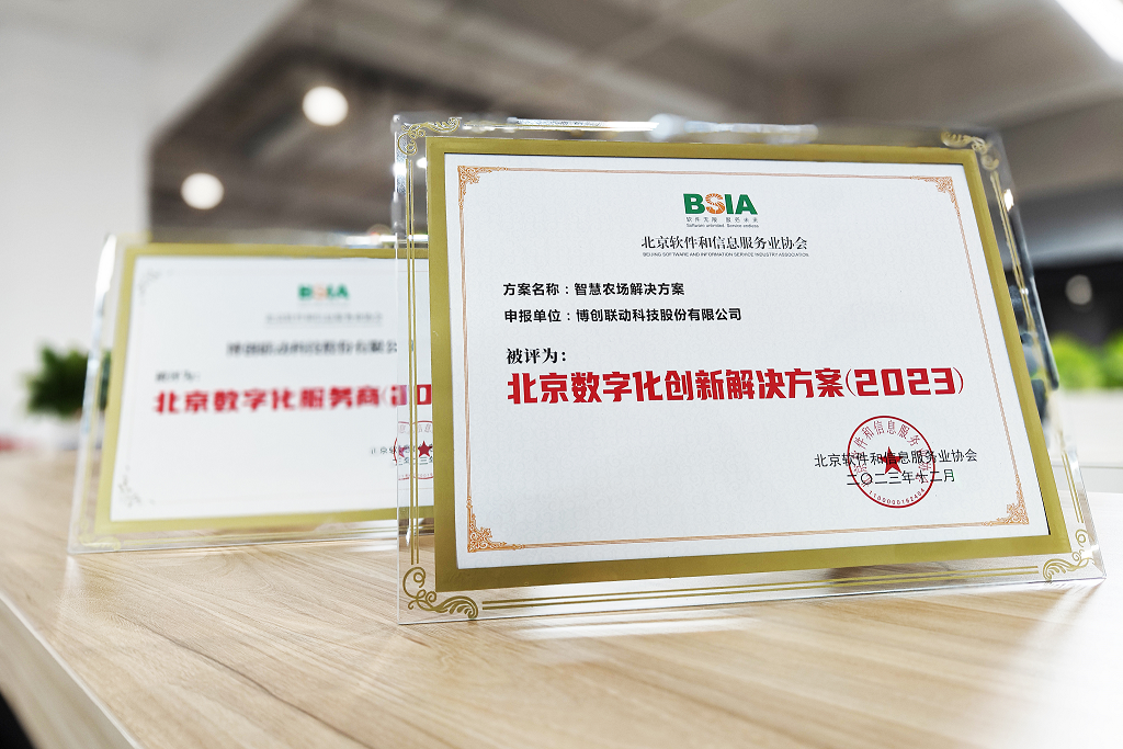 作為國內農機智能化與信息化的領軍企業,博創聯動憑借技術實力、創新能力、人才實力和綜合競爭力入選由北京軟件和信息服務業協會頒發的“北京數字化服務商(2023)”名單,其智慧農場解決方案被評選為“北京數字化創新解決方案(2023)”。