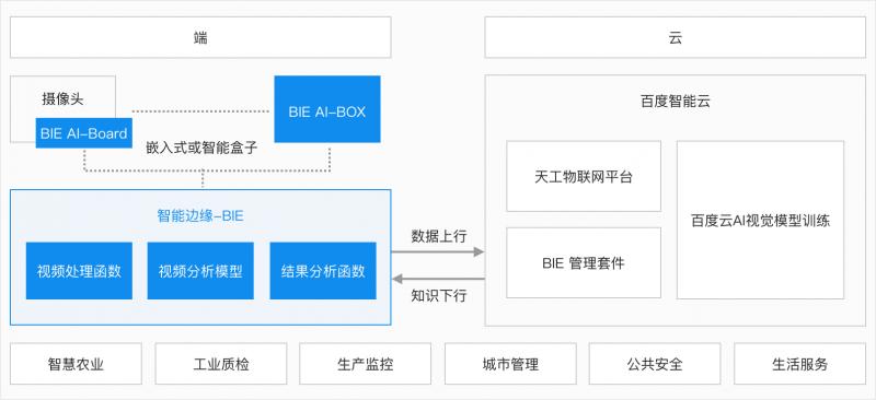 百度智能邊緣產品(Baidu IntelliEdge,BIE)提供了從云端生產環境、管理環境到本地運行環境的全套工具,將百度云 ABC 的能力從云上拓展到邊緣,進而拓展至各行各業。
