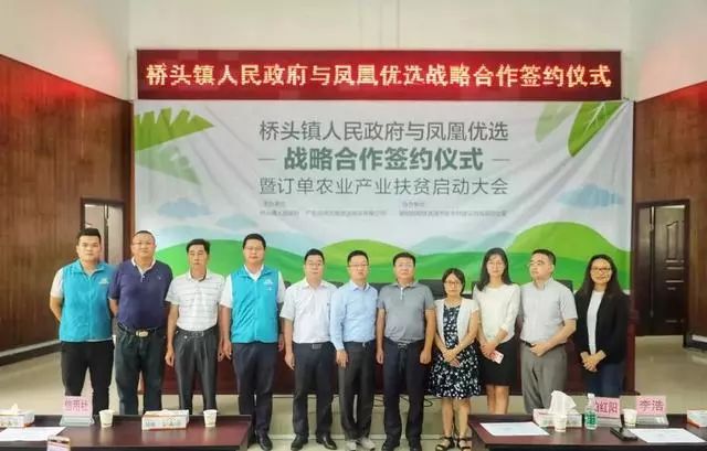 6月12日,碧桂園鳳凰優選與英德市橋頭鎮人民政府簽訂戰略合作協議。未來,鳳凰優選將通過訂單農業模式對英德市橋頭鎮進行產業幫扶。兩方以“公司(超市)+合作社+農戶”的合作模式發展訂單農業,實行利益共享、風險共擔。