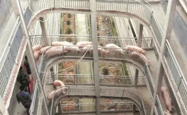 在豐都縣樹人鎮種豬場,如果不經人介紹,完全無法想象,一棟7層的樓房里竟住著約2萬頭生豬。